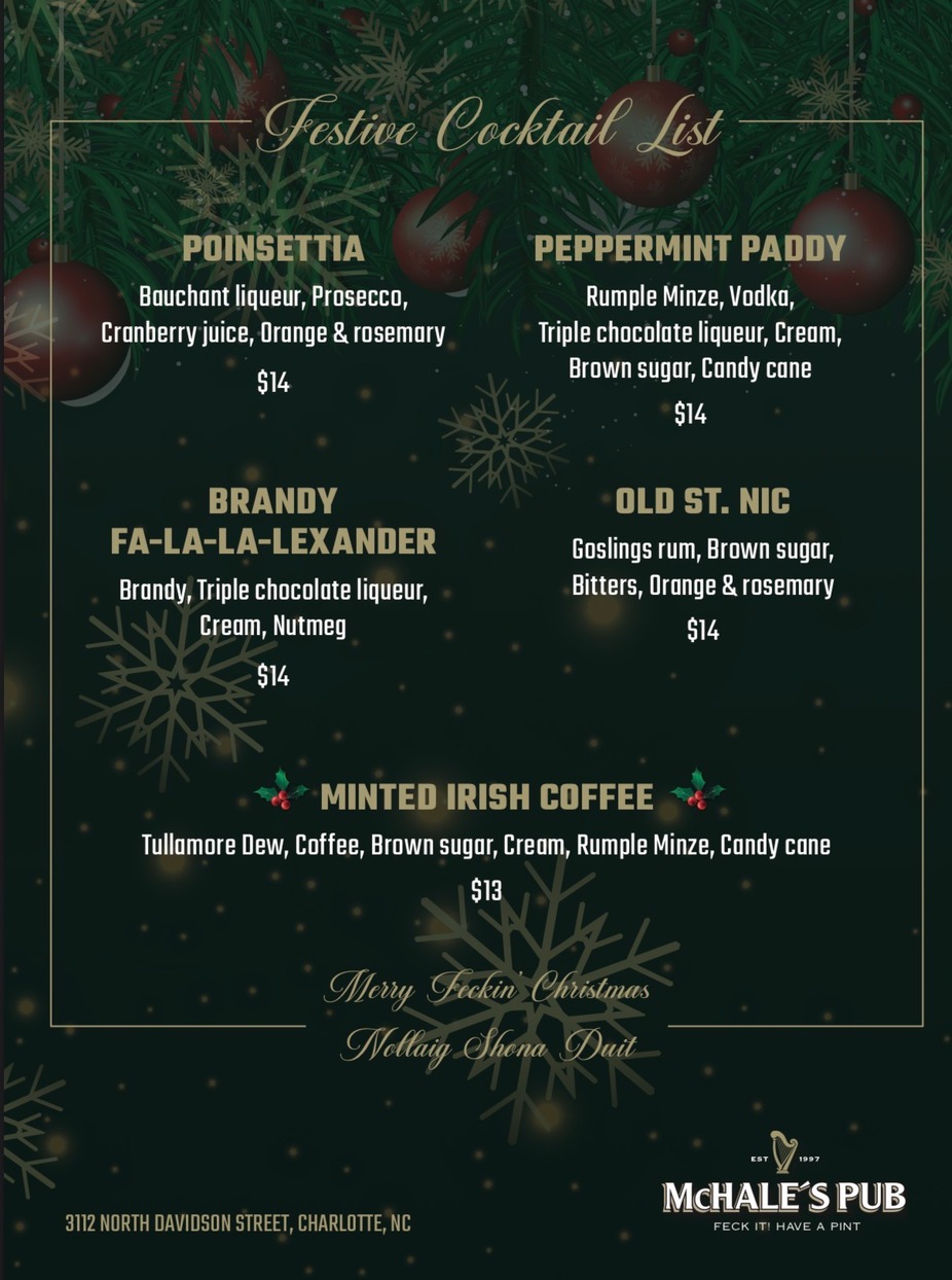 Spend Christmas night with your McHale’s family! Festive pints, warm atmosphere and plenty of holiday cheer! Bar only. Sláinte!