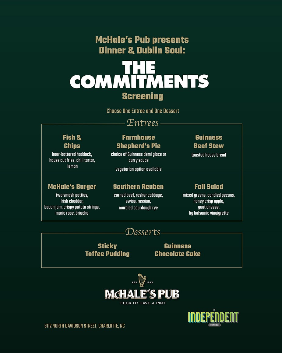 Start the night at McHale’s, then head up the street to Independent Picture House for The Commitments 🇮🇪