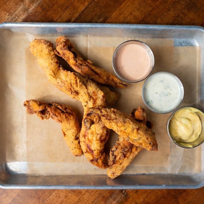 breaded chicken strips, ranch, Marie rose or curry aioli